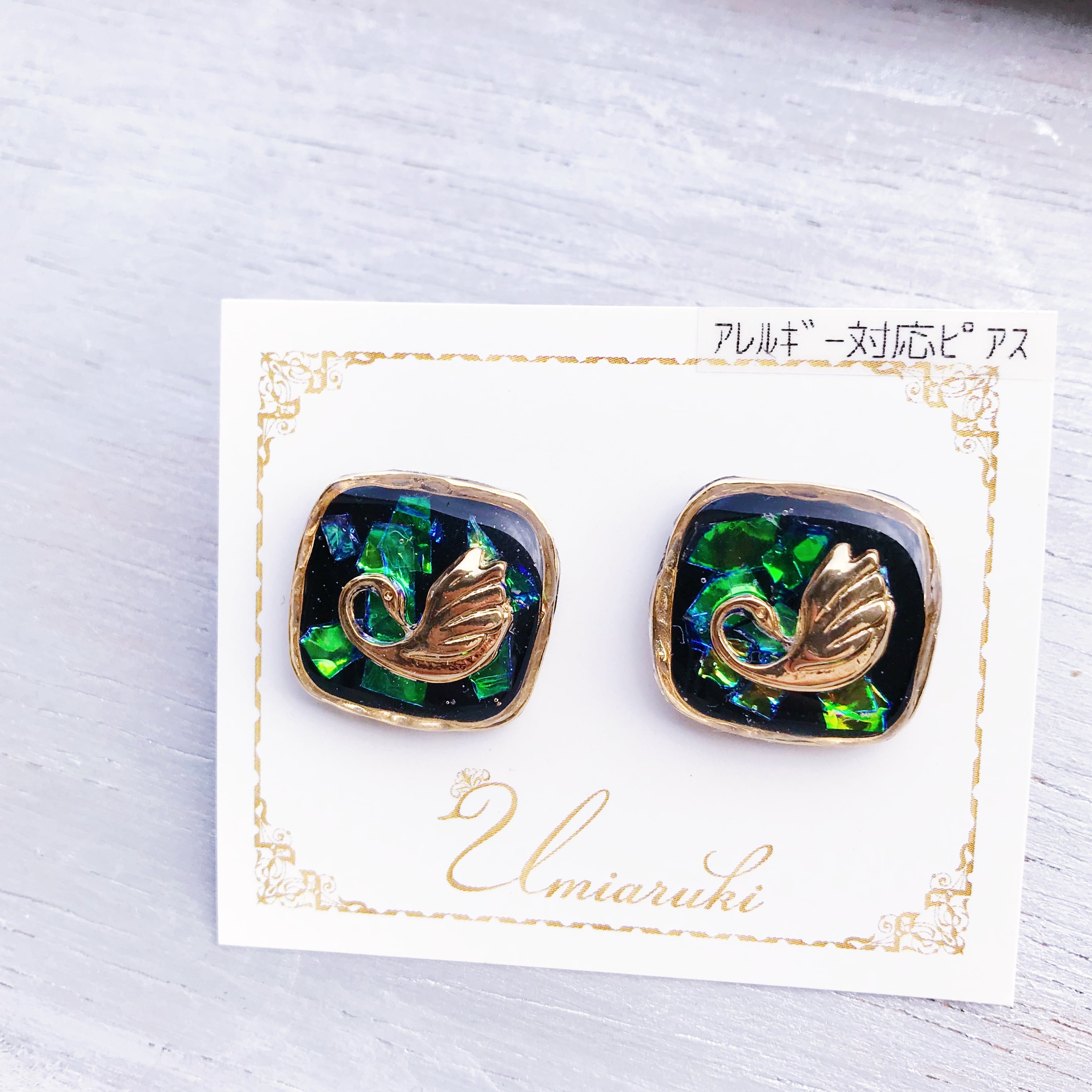 ઃ 白鳥の湖をイメージし、スワンをレジンで閉じ込めたシンプルシリーズの新作です。
